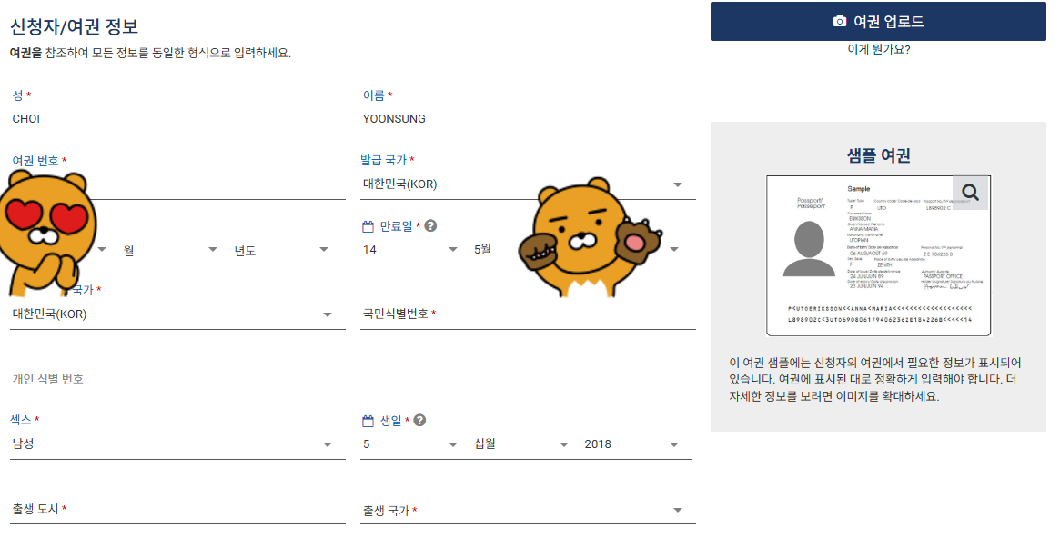 여권 업로드를 하면 자동으로 여권 정보가 입력되서 좋더라구요! 정확하게 입력되었는지 확인만 해주시면 되요!