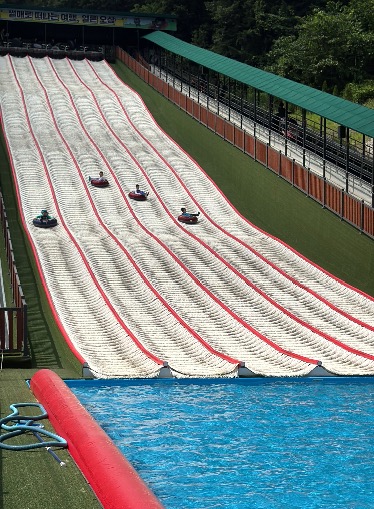 썰매는 계단 없는 에스컬리이터 형식 리프트가 있어 튜브와함께 서있기만 하면 되요~ 가파른 오르막길도 편하게 올라 갈 수 있어요!