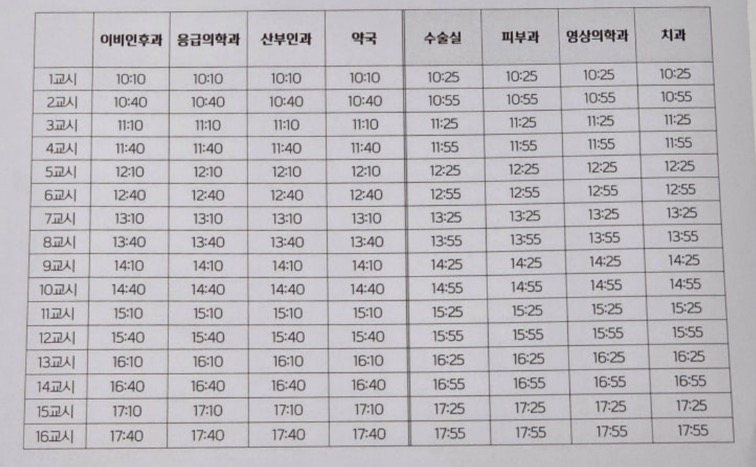 주말, 공휴일 시간표예요! 참고하시길 바라요~