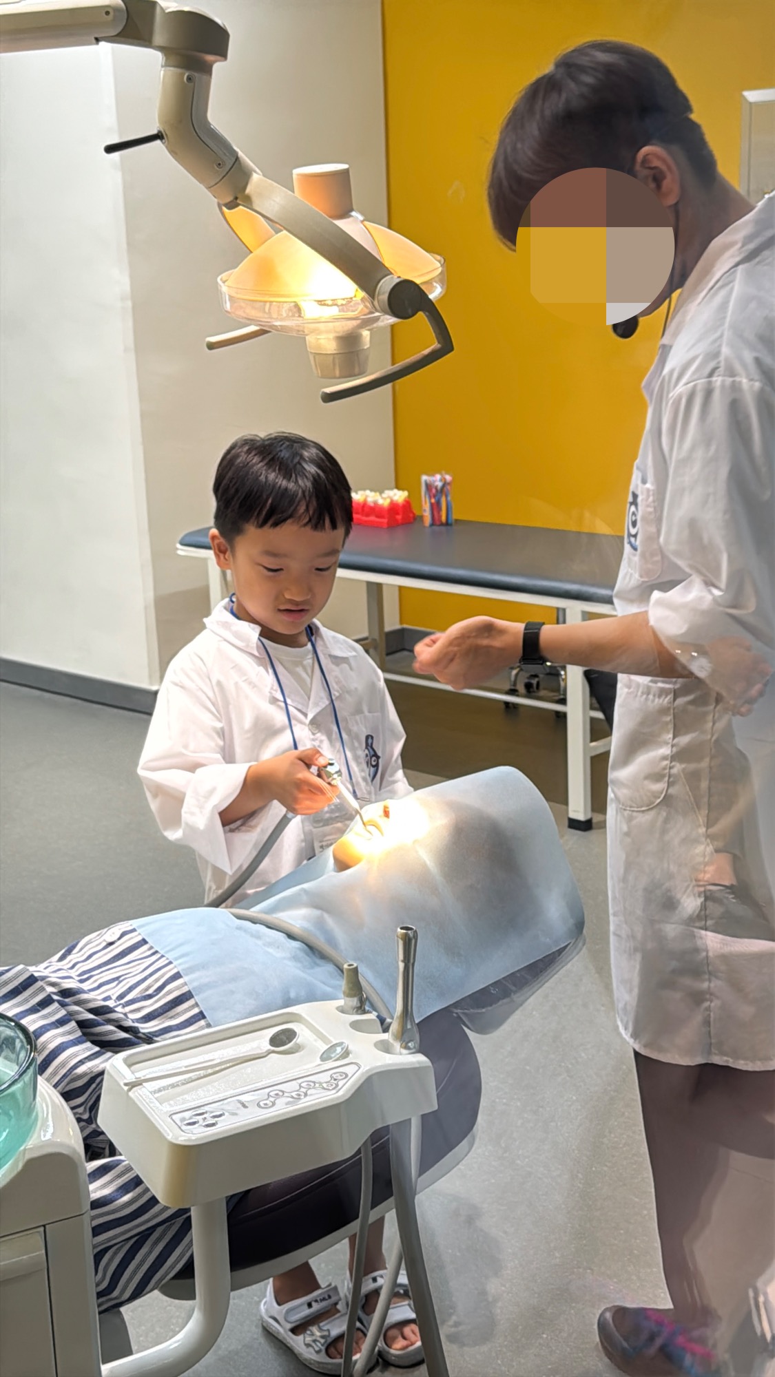 치아에 충치가 생기는 이유를 배우고, 도구로 직접 치료해 보니 재미있어했어요. 앞으로는 양치도 더 열심히 해야겠다는 생각이 들었다고 하더라고요! 역시 체험을 해보아야 몸소 더 느끼는 것 같아요~
