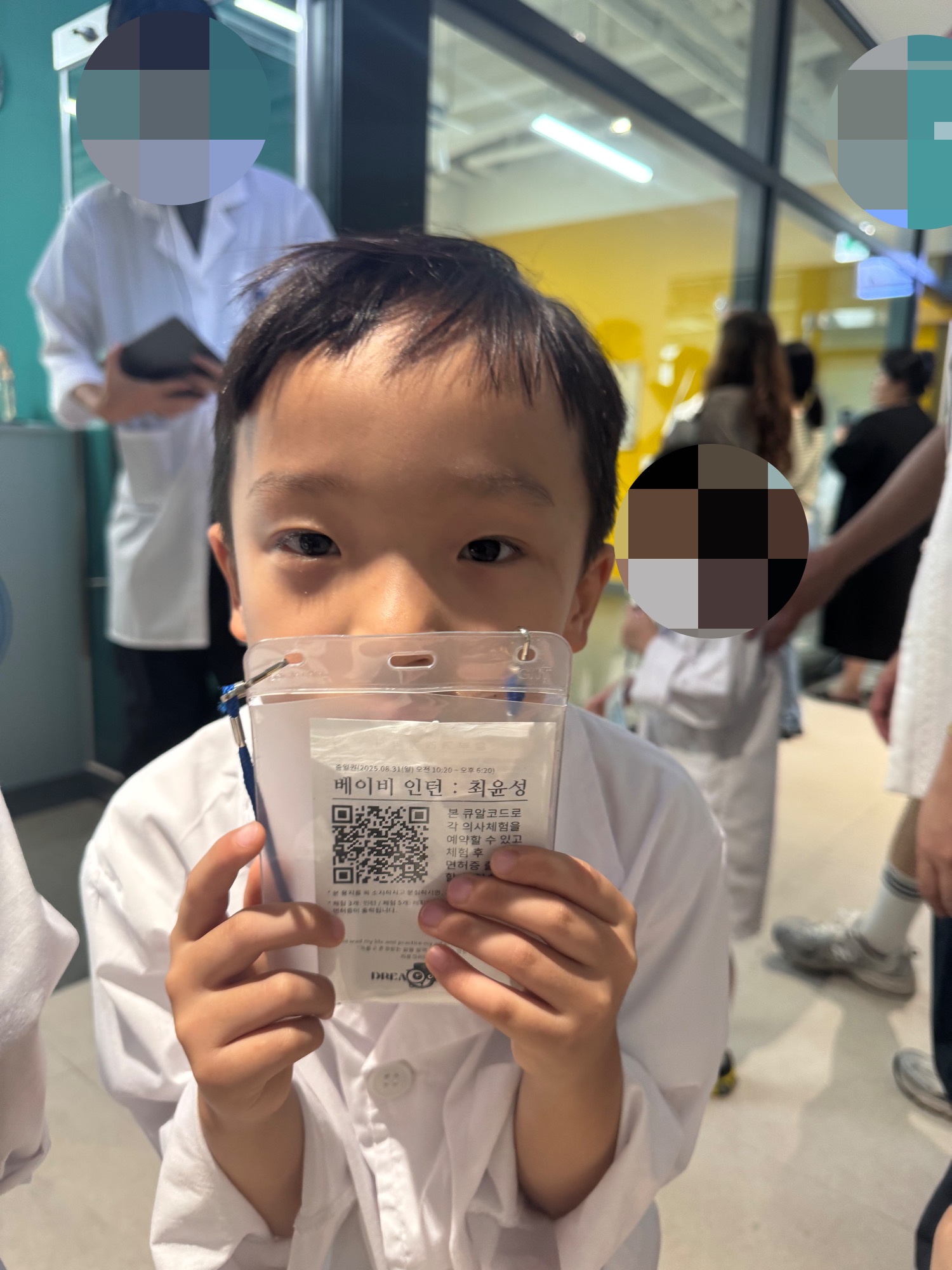 카운터에서 예약자 정보를 알려드리면 아이들에게 베이비 인턴 큐알코드를 발급해 주시더라고요! 해당 큐알코드로 체험 예약을 진행해야 된답니다. 타임별 예약 가능 체험과목은 1개예요. 같은 과목 중복 이수 불가하도록 규정되어 있어요.