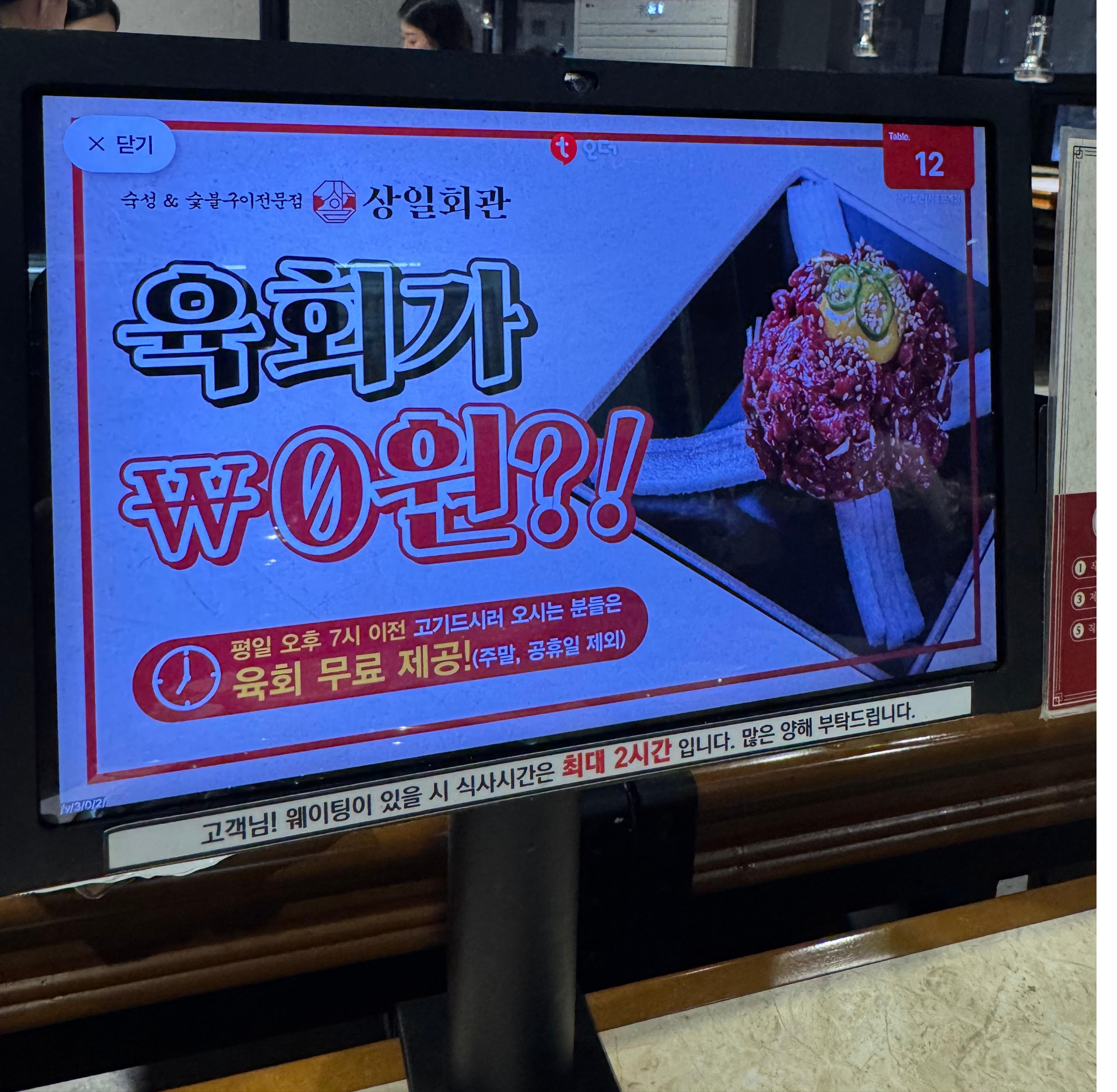 🥗 평일 오후 7시 이전 방문 시 ‘육회 무료 제공’