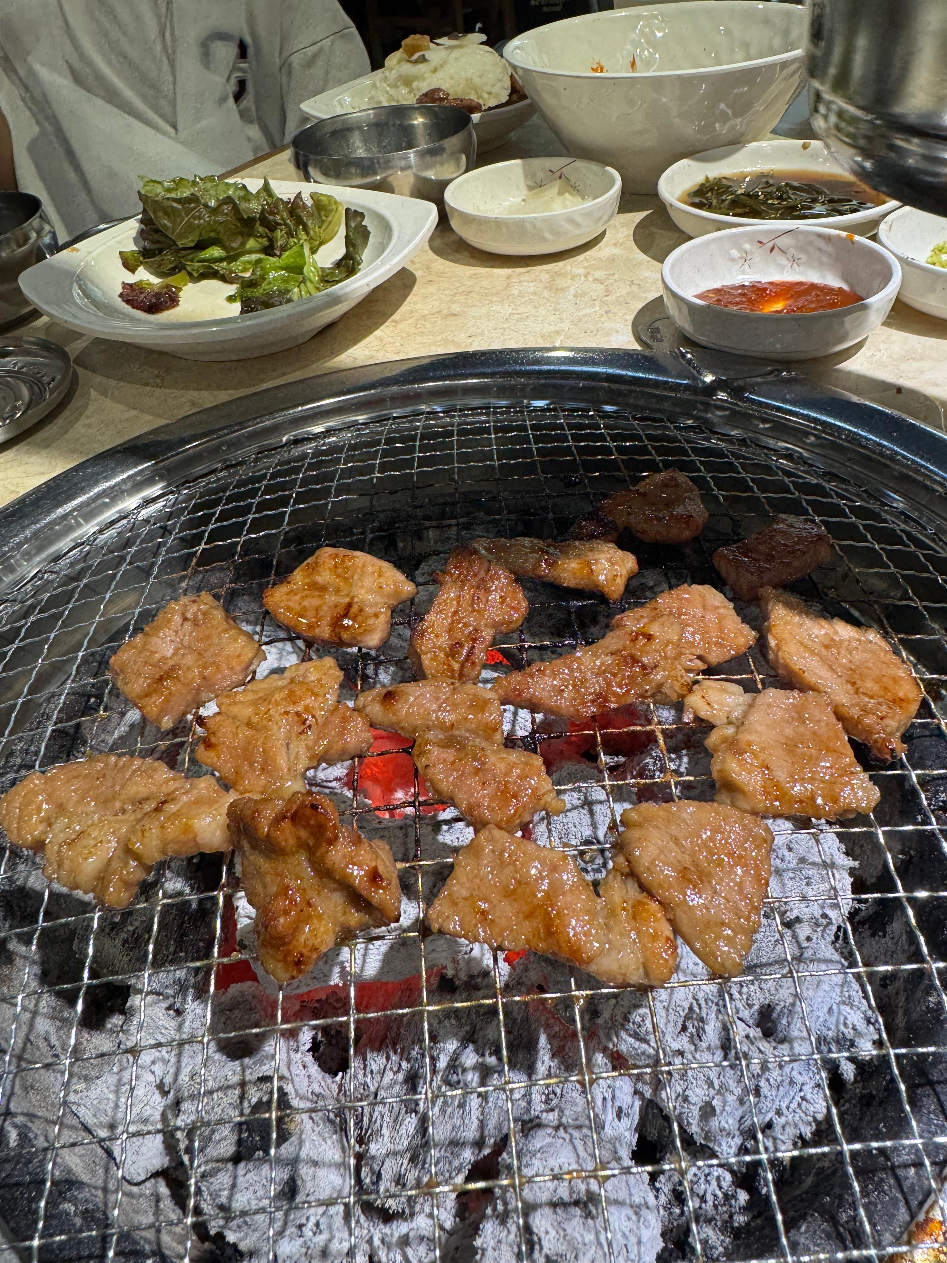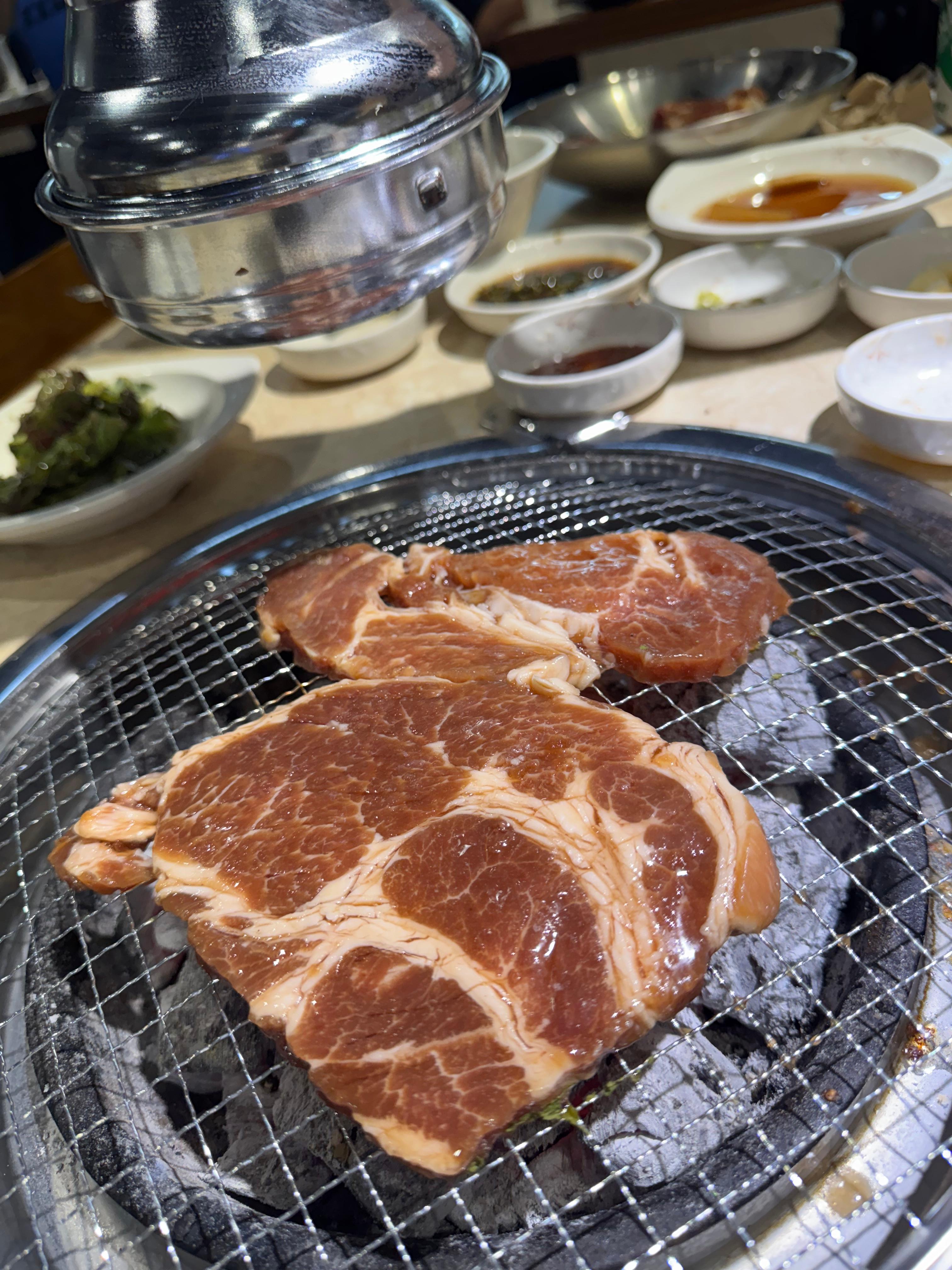 와규가 고급스럽고 부드러운 맛을 선사했다면, 양념숯불고기는 친근하면서도 중독적인 매력이 있었습니다. 달콤 짭조름한 양념이 숯불 향과 만나 밥 한 공기를 뚝딱 비우게 만들더라고요.