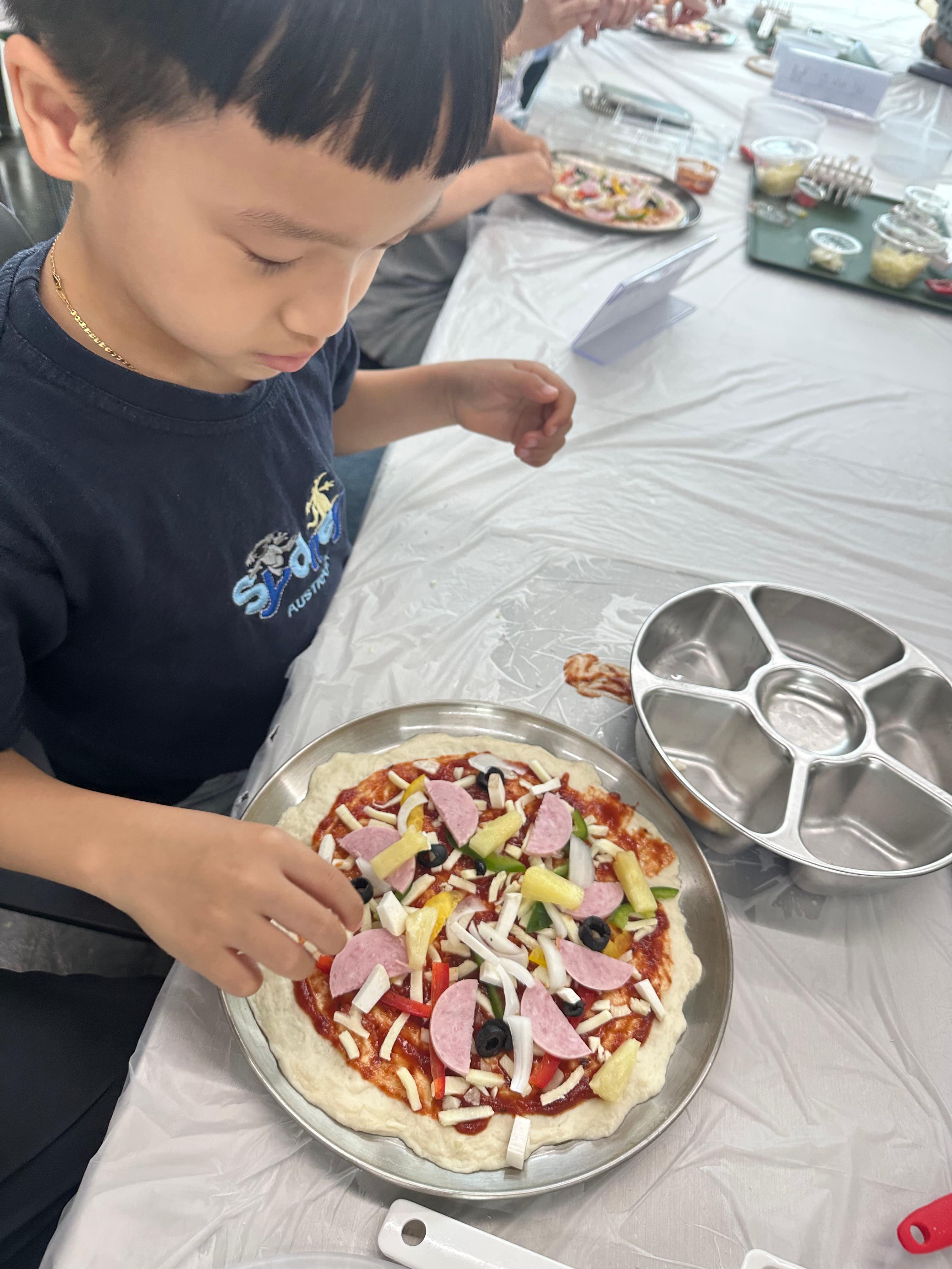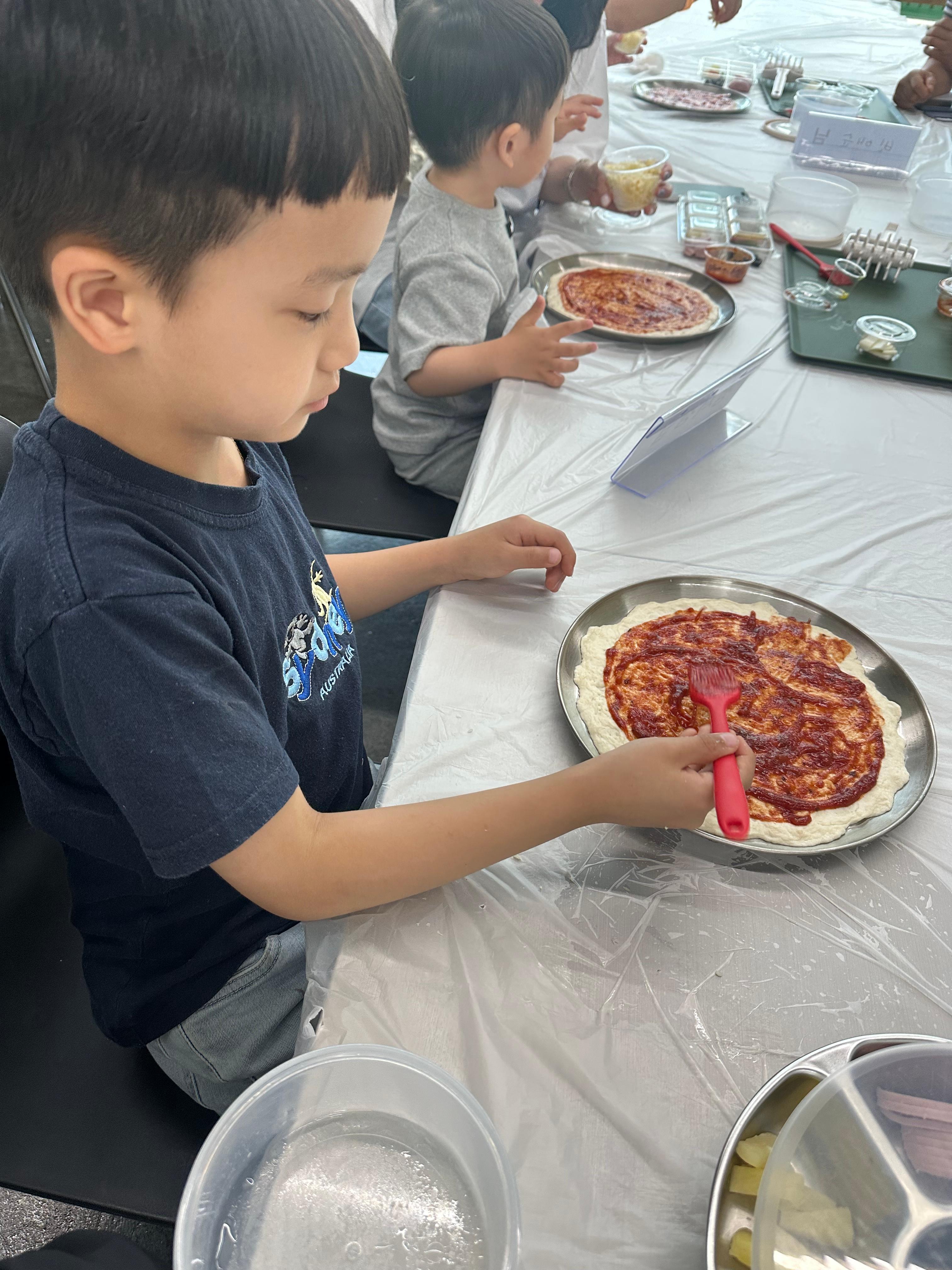 아이와 함께 반죽을 직접 밀고, 토마토소스와 토핑을 올린 후 오븐에 구워 먹을 수 있는 프로그램입니다.