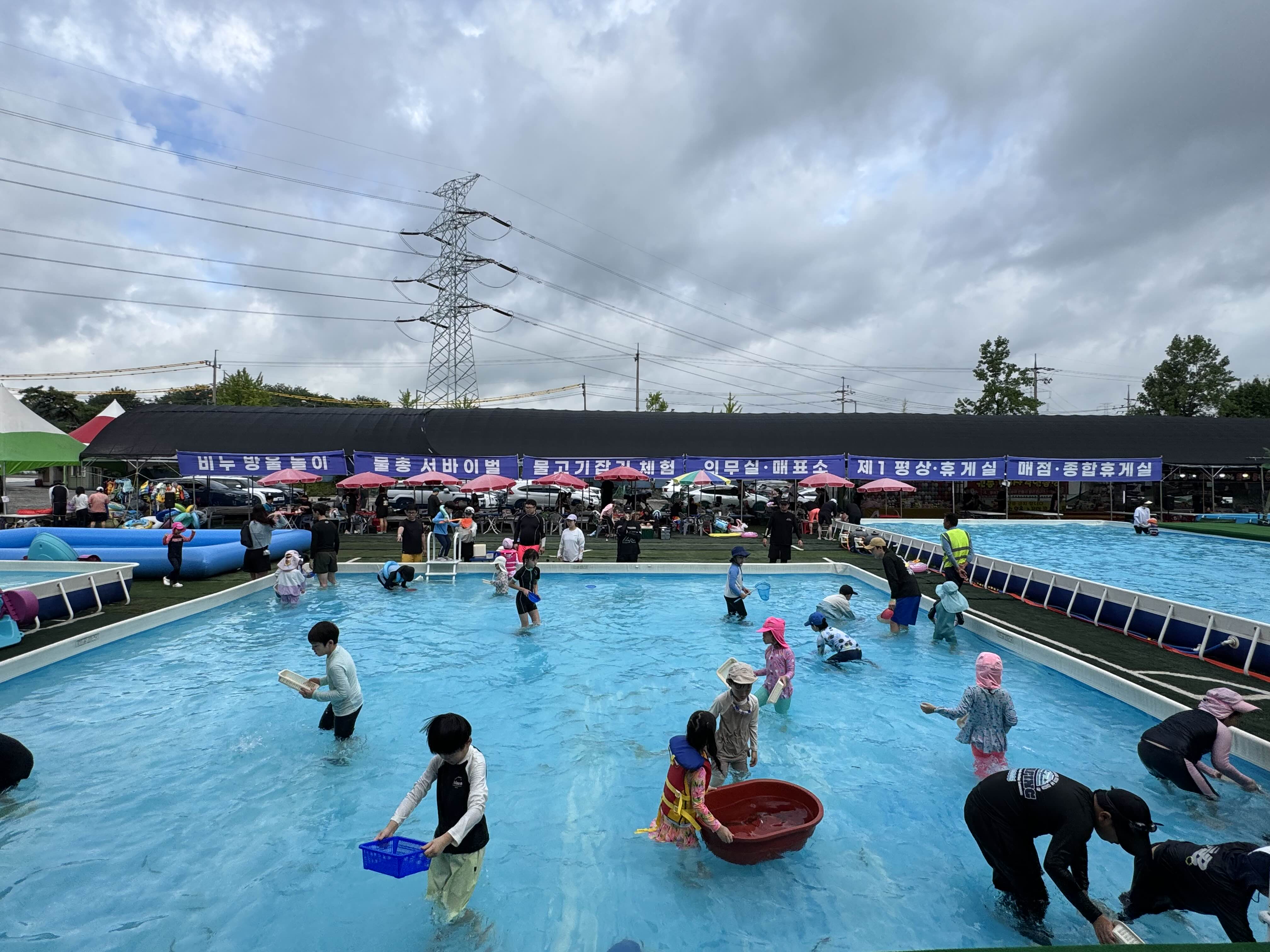 • 아이들이 풀장 안에서 직접 미꾸라지와 메기를 손으로 잡는 체험