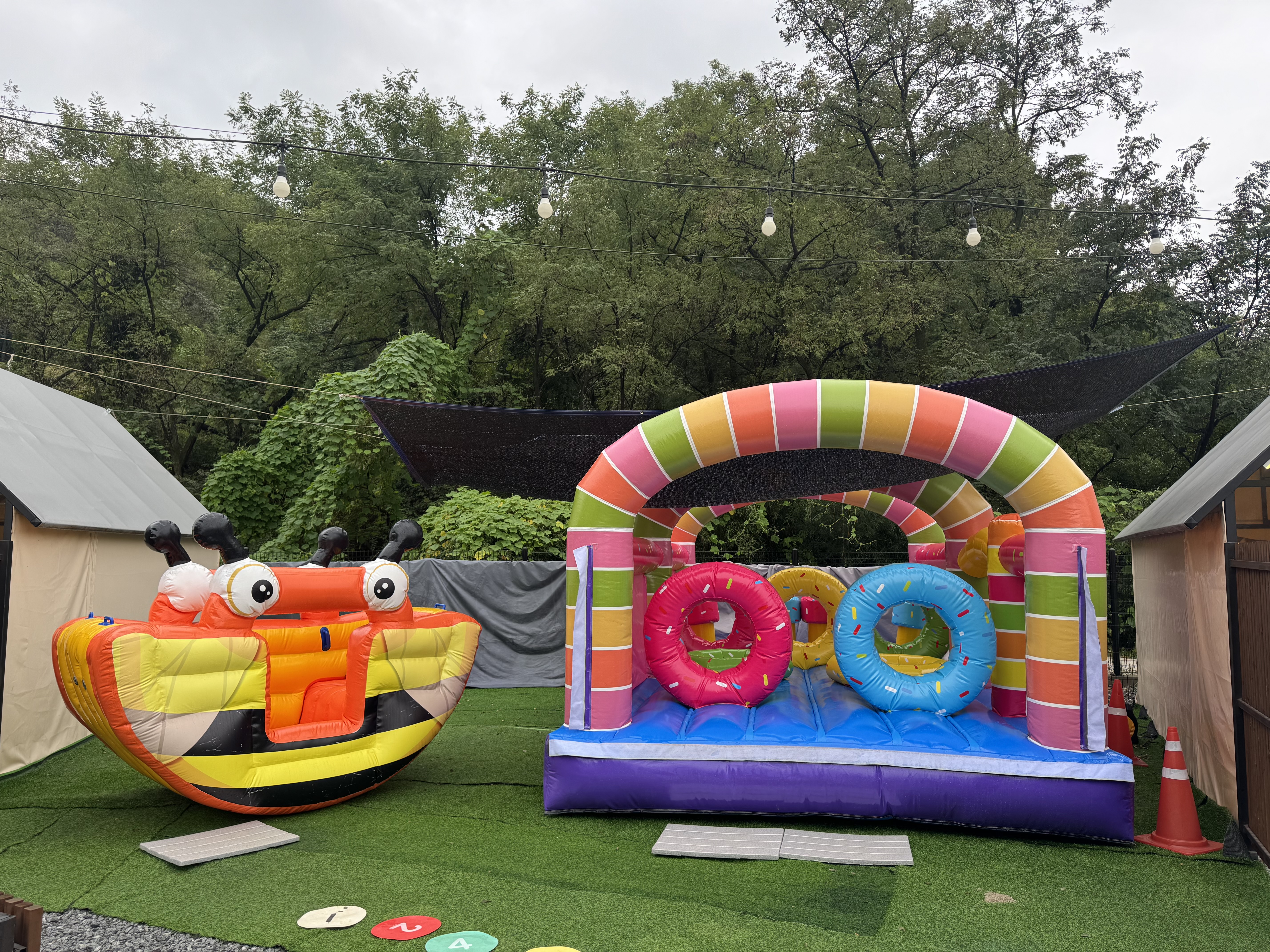 텐트동 2,3동 앞에 에어시소와 에어바운스가 준비되어 있어요!